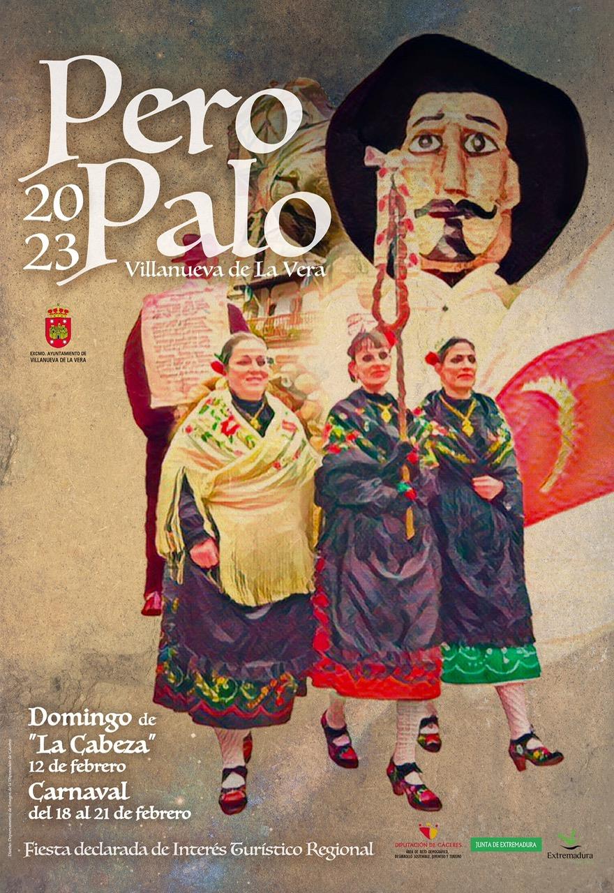 En Villanueva de la Vera celebran el domingo de «La Cabeza», festividad que anuncia la llegada del carnaval. Los vecinos sacan por la tarde en procesión la cabeza del Pero Palo ataviada son sombrero y pañuelo.