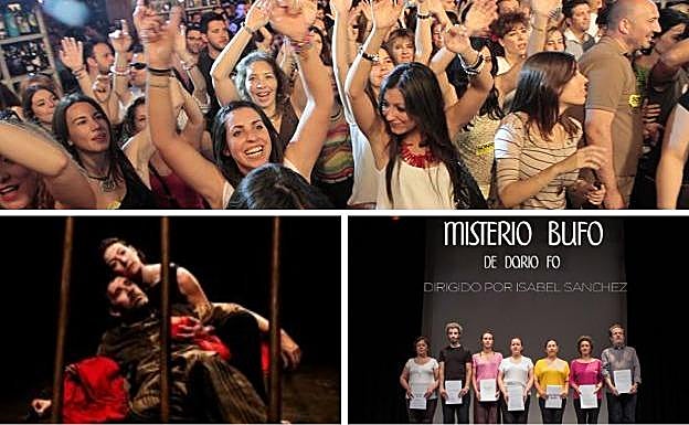Y media hora después los amantes del teatro puede elegir entre dos obras. La compañía Garnacha Teatro pone en escena en la sala principal del Gran Teatro, 'Misterio Bufo', de Darío Fo, y el Teatro Maltravieso Capitol acoge la representación de 'Miguel Hernández, el grito herido'.