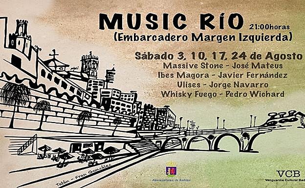 Empezamos con Músic Río que se despide este sábado en la margen izquierda del río Guadiana con la actuación del grupo musical 'Whisky Fuego' y 'Pedro Wichard'. Llenarán el embarcadero de música rock y blues. El concierto será a eso de las 24.00 horas. La entrada es gratuita.