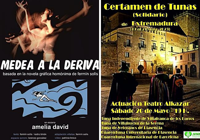 Tampoco falta el teatro. El Alkázar acoge este viernes a las 20.30 horas la obra 'Medea a la deriva', la adaptación de la novela gráfica de Fermín Solís llevada a cabo por Maltravieso Teatro. Un día después, el sábado, en este mismo espacio tendrá lugar el Certamen de Tunas a beneficio de AOEX.