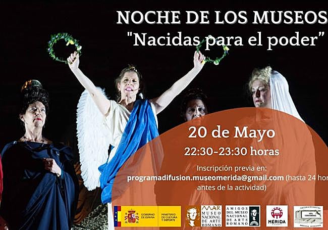 El sábado a las 22.30 horas el Museo Nacional de Arte Romano propone una cita con la historia. Con motivo de la celebración del Día Internacional de los Museos, el MNAR ha organizado la recreación 'Nacidas para el poder'. En esta propuesta las mujeres de la dinastía ulpia-trajana expondrán un retrato intimista de su vida.