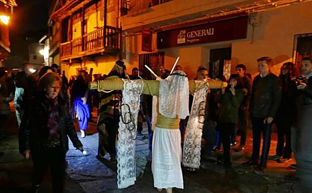A partir de medianoche, el sonido de las vilortas advertirán de la presencia de un empalao recorriendo las calles de la localidad. Lo hacen descalzos, con un timón de arado sobre sus hombros y una soga de esparto que le rodea pecho y brazos. Llevan una enagua blanca, una toga y el rostro cubierto. El Via Crucis tiene un recorrido con 14 estaciones y a lo largo de la noche van saliendo diferentes empalaos y si se encuentran se arrodillan uno frente al otro.