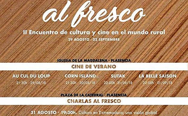 El II Encuentro de Cultura y Cine Rural Al Fresco vuelve otro año más a la capital del Jerte para acercar el arte audiovisual a los habitantes de Plasencia. Consiste en generar debate sobre los asuntos que conciernen a nuestro entorno.