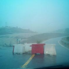 Uno de los puntos más conflictivos ha tenido lugar en las obras de acceso a la ciudad por la carretera Ex-370. El viento ha arrastrado vallas y material de obra que ha dejado taponada la calzada en varios tramos. Las tuberías de desagüe y los arroyos, que hasta hoy estaban completamente secos, se han desbordado inundando la carretera. La mayoría de los conductores, y como medida de seguridad, han permanecido en el interior de sus vehículos durante aproximadamente 20 minutos, mientras los que han podido, han dado media vuelta para regresar a la ciudad. Cuando ha cesado levemente la lluvia, los conductores más atrevidos se han bajado de sus coches o camiones y han retirado los obstáculos para poder reanudar la marcha.