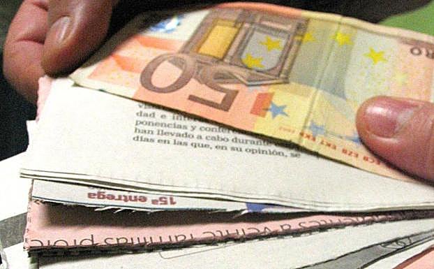 Guardan ese dinero en una bolsa, tras mostrárselo al más joven, y engatusan a la víctima, haciéndole creer que le entregan la bolsa donde se halla el total del dinero (el suyo y el paquete de billetes que portaba el joven).