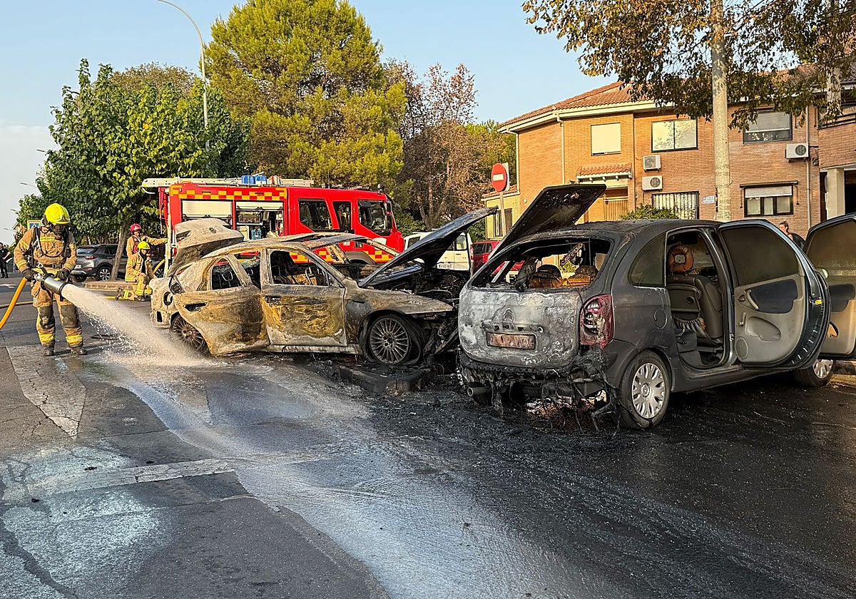 El suceso tuvo lugar a las siete y media de la tarde, cuando uno de los coches empezó a despedir humo en la avenida de Extremadura, frente al colegio del Pilar