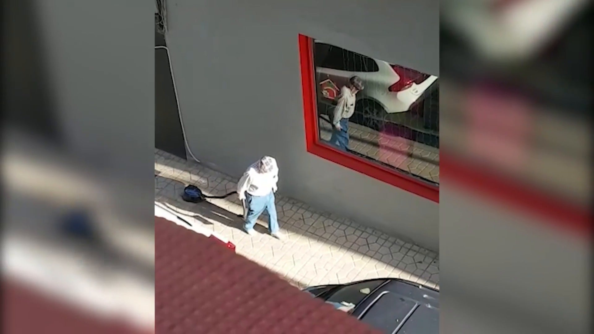 El vecino de la localidad cacereña ha sacado a pasear una aspiradora por la avenida de la Vera