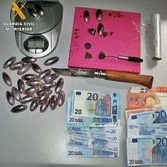 Así fue como la pasada semana, se llevo a cabo el registro de la vivienda, donde los agentes hallaron 33 bellotas de hachís con un peso de 345 gramos, de las que se obtendrían unas 1400 dosis de la droga. Además de la droga se intervinieron una balanza de precisión, elementos para el corte, envasado y venta de la droga y 295 euros presuntamente obtenidos del tráfico de esta.