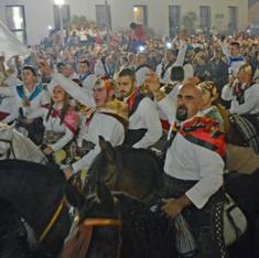 Los jinetes se preparan con su vestimenta típica: gorro multicolor puntiagudo en la cabeza, pañuelo multicolor al cuello, camisa blanca, faja roja o negra, pantalón de paño o pana negro, botas y zahones de cuero. Y a los caballos se les coloca: el cabezón, el pecho petral y las campanillas, la montura, la manta de madroños y el encintado de la cola. Unas indumentarias que aportan una gran vistosidad a la fiesta.