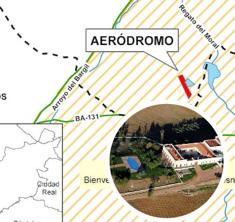 El aeródromo, que estará funcionando en un año, se sitúa a 4 kilómetros de Hinojosa del Valle, a 9 de Los Santos de Maimona y a 12 de Zafra. Además, se halla a 15 kilómetros por carretera de la finca Los Quintos de San Martín, en el término de Valencia de las Torres. Es donde el jeque Mansour Al Nahyan tiene proyectado un aeródromo cuya autorización por parte del Ministerio de Agricultura y Medio Ambiente es prácticamente imposible.