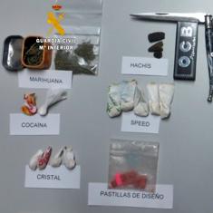 A uno de los inspeccionados se le encontró entre sus vestimentas cinco papelinas de speed preparadas para su venta y ante las sospechas de que esta persona pudiera tener oculta más droga en los alrededores del turismo, se llevó a cabo una minuciosa inspección donde se localizaron dos papelinas de cocaína, once pastillas de droga de diseño, cuatro papelinas de MDMA, tres trozos de hachís y un envoltorio con marihuana.