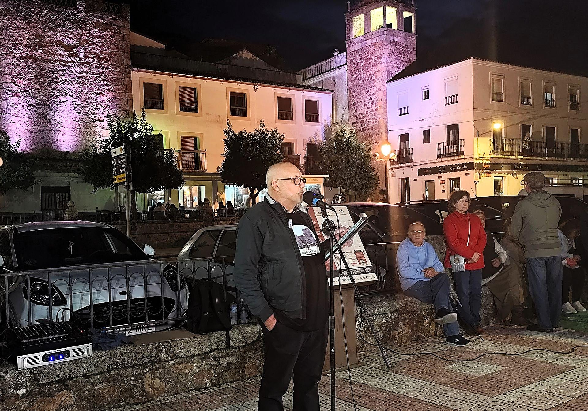 José Manuel Leal, presidente del colectivo convocante se refirió a los daños que sufre el monumento. «Murallas sin almenas, lienzos desprendidos, la torre principal no se puede visitar porque se cala, sillares sueltos. En definitiva: abandono, desidia y ruina, y no vamos a consentir que pase como con el puente romano de Guadarranque, que se vino abajo por lo mismo«.