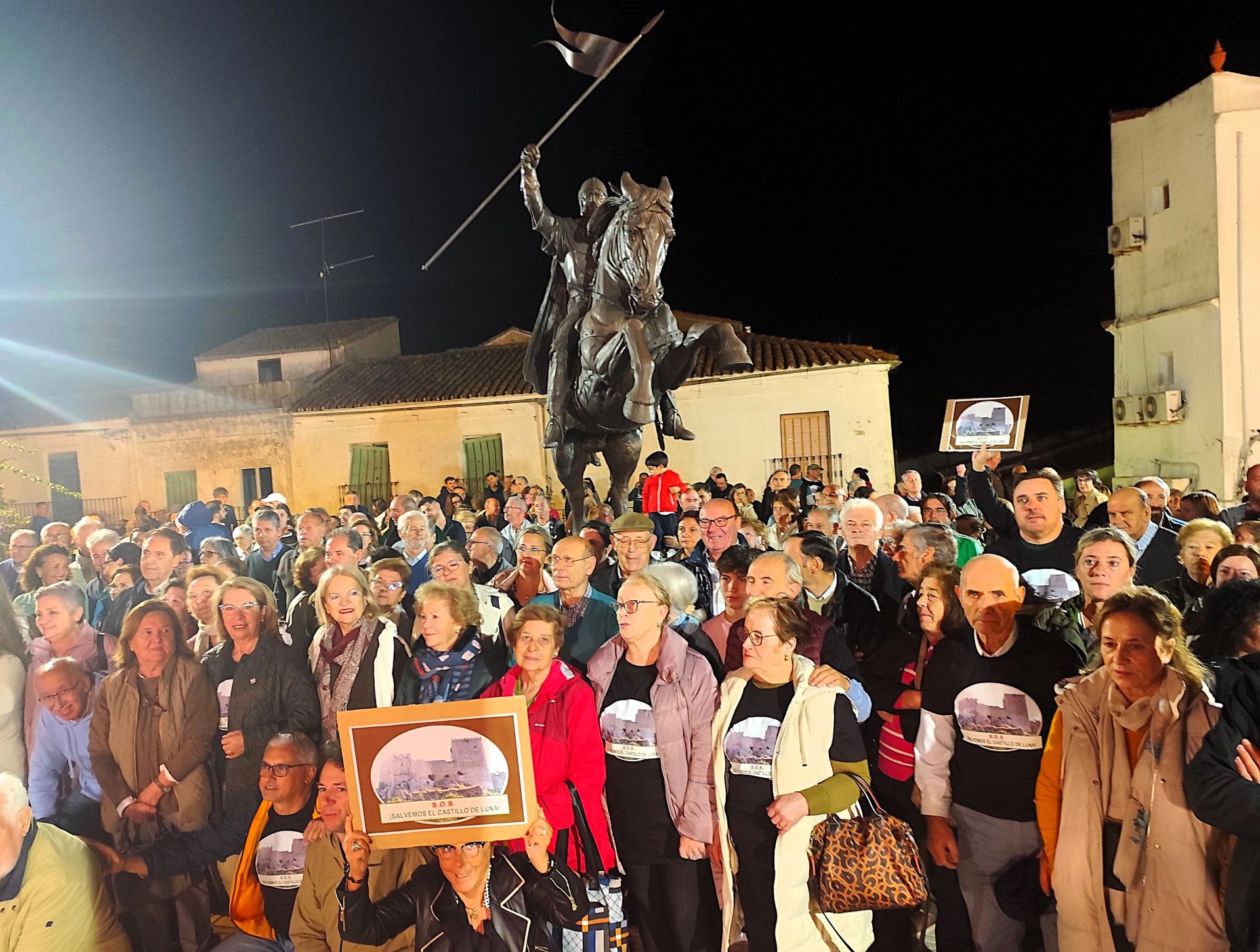 Aureliano Sáinz, presidente de honor de Tres Castillos, hizo un recorrido histórico por los cambios experimentados por la fortaleza en sus ocho siglos de vida hasta llegar a su fisonomía actual. Puso varios ejemplos de castillos españoles bien conservados, respetados y gestionados, «algo que no ocurre con esta que es la fortaleza medieval cristiana más relevante de Extremadura«. Aseguró que la concentración, »es el comienzo de una lucha que no va a parar, porque no nos conformamos con una pequeña reparación de los daños más urgentes, sino que pedimos lo que necesita el castillo, un proyecto global de restauración y conservación«.