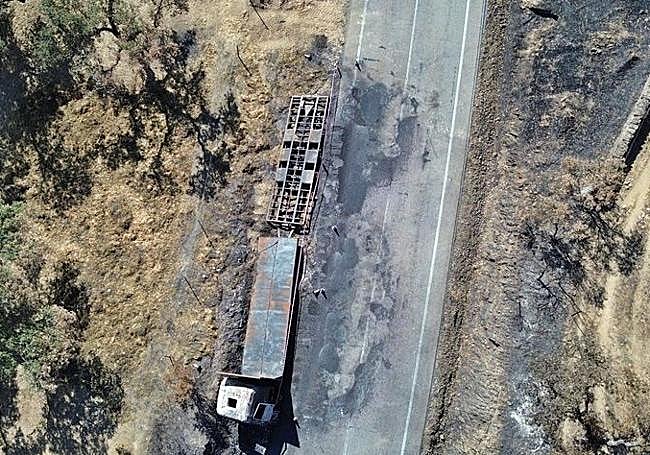 Las chispas de la rueda en llantas de un camión causaron el incendio que quemó 5.900 hectáreas en LlerenaSu circulación provocó chispas que prendieron la carga de alpacas de pajas que transportaba, calcinando el propio vehículo y propagándose a la vegetación del terreno de la Campiña Sur