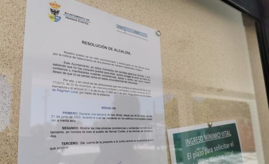 El Ayuntamiento cortesino ha decretado una semana de luto oficial y ya este domingo sus banderas municipales ondeaban a media asta.