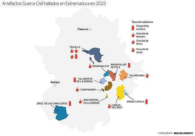El Grupo Especial de Desactivación de Artefactos Explosivos (Gedex) de la Guardia Civil ha desactivado una granada de mortero que fue hallada por un vecino ... en una finca de Campanario. El hombre encontró el pasado lunes el proyectil, del calibre 81, mientras paseaba por el terreno, en un paraje conocido en la localidad pacense como Malpica.