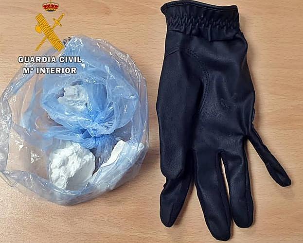Tras identificar al conductor, un vecino de La Haba, y su acompañante, una vecina de Dos Hermanas, revisaron sus pertenencias así como el vehículo, hallando oculto en el interior de un guante un envoltorio que contenía 52 gramos de cocaína en roca. De esta droga podría obtenerse en el mercado ilícito unas 245 dosis.