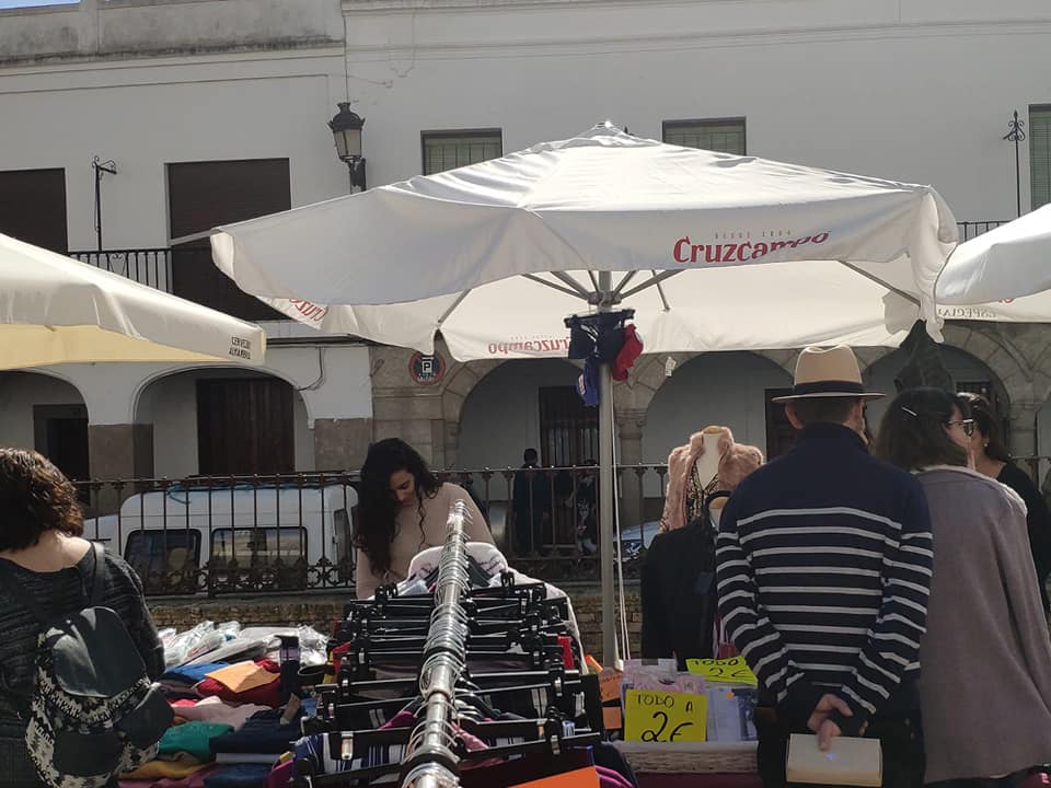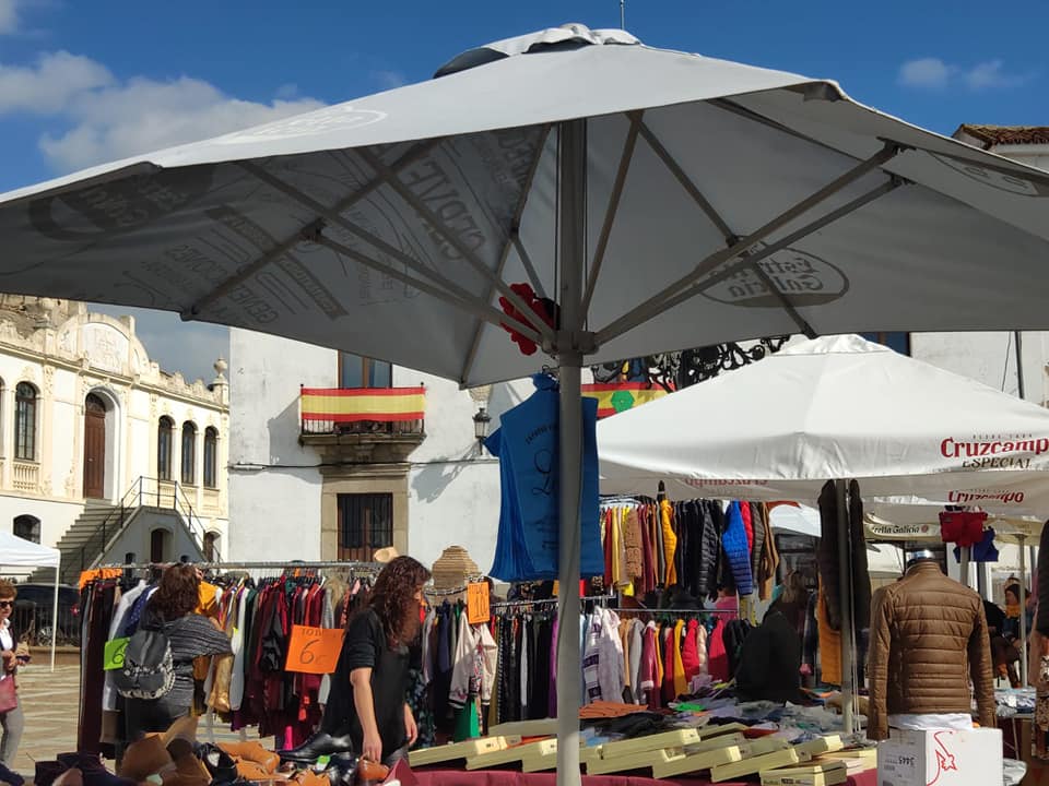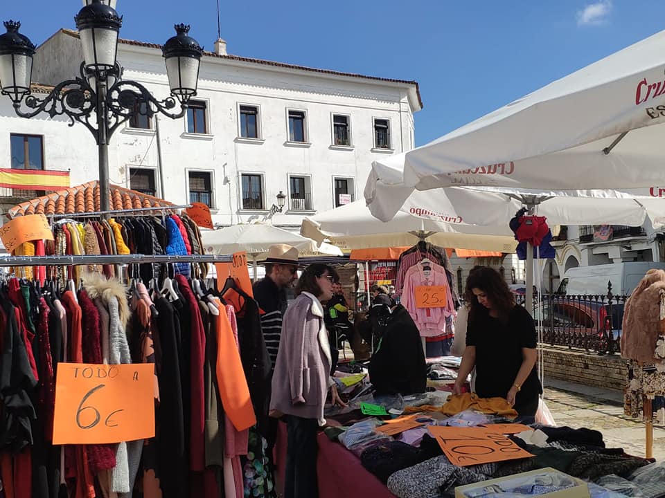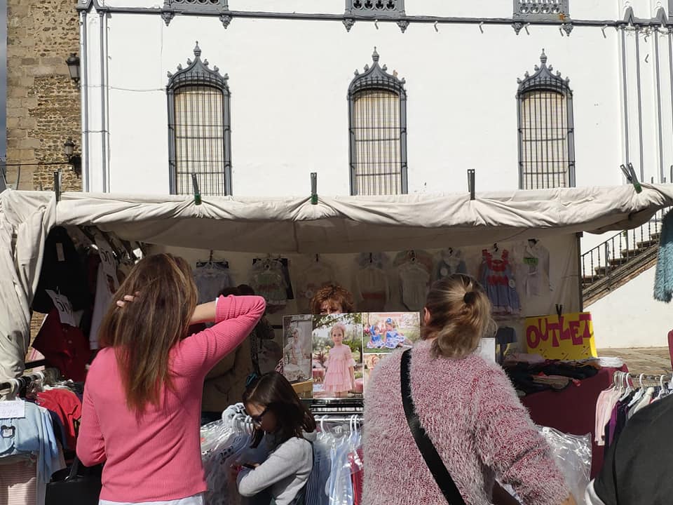 Mañana soleada y calurosa que eligieron los miembros de ACOFREX para sacar a la calle sus tiendas en este outlet.