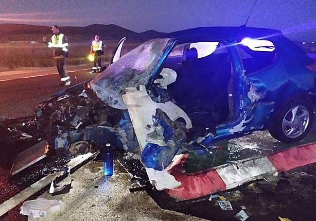 El choque entre un Peugeot 207 y un Ranger Rover Evoque ha ocurrido sobre las 6.48 horas en el kilómetro 62 de la vía en el sur de la región. El turismo más pequeño ha quedado prácticamente destrozado.