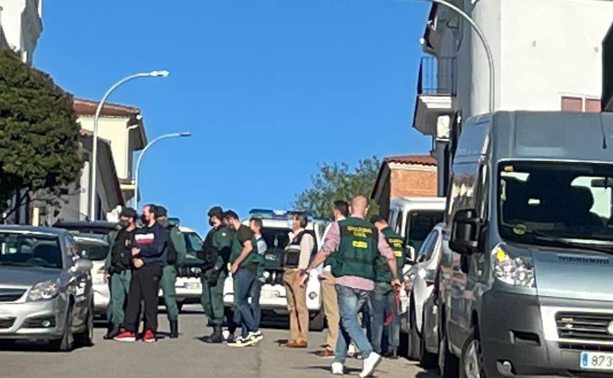 Hasta las proximidades de las viviendas también se han desplazado el marido y el hijo de Francisca Cadenas, desaparecida en Hornachos, para apoyar a la familia de Chavero.