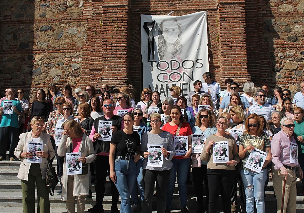 María Cintado es la última persona que vio a Manoli Chavero antes de desaparecer. La dejó en su casa el 4 de julio de 2016 ... a las once de la noche. Presuntamente unas horas después Eugenio Delgado la mató y por ello será juzgado desde el próximo lunes en Badajoz. María espera que la semana termine con un veredicto de culpabilidad y que el juez imponga la prisión permanente revisable, que sería la primera en Extremadura. «No vamos a descansar, pero al menos cerramos una etapa». Cintado hizo estas declaraciones este jueves rodeada de otros 70 vecinos de Monesterio que se concentraron en la plaza del pueblo al grito de 'justicia'. Los paisanos de Manoli posaron delante de un cartel que preside la plaza de este pueblo desde hace ocho años. El color de la lona está desgastado pero siguen colocando flores y velas para recordarla.