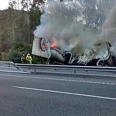Cabe recordar que este carril se ha cerrado al tráfico pasadas las 15,00 horas de este miércoles debido al incendio de un camión que transportaba neumáticos, un incidente que no ha provocado daños personales.