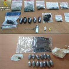 La Guardia Civil ha aprehendido un total de 490 gramos de hachís, 100 gramos de marihuana, así como diversas cantidades menores de cocaína y anfetamina