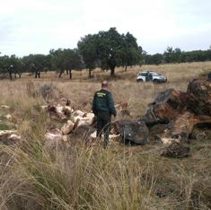 Posteriormente, la Guardia Civil determinó que este hombre era además el presunto autor de la sustracción de otros 4.000 kilogramos de corcho en otra finca de la Sierra de San Pedro.