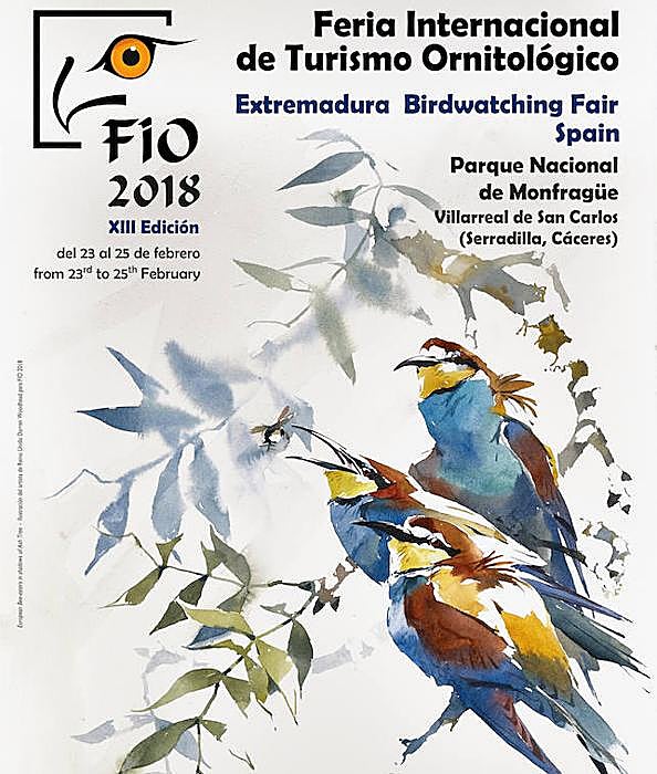El abejaruco europeo (Merops apiaster) es la especie elegida para ilustrar el cartel de la Feria Internacional de Turismo Ornitológico (FIO) de 2018, obra del artista británico Darren Woodhead (West Yorkshire, 1971).
