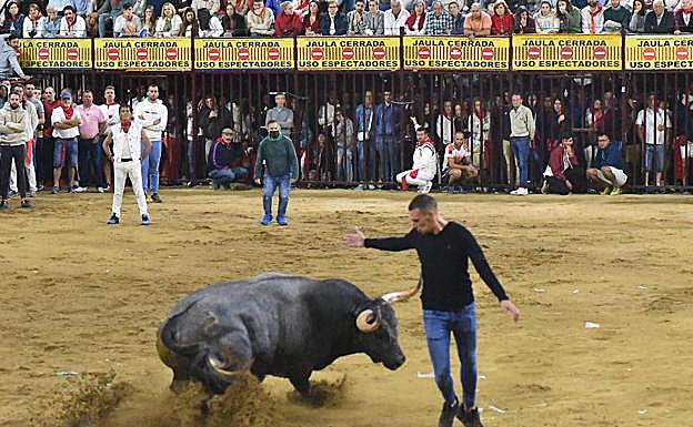 'Colibrí', de la ganadería de Enrique Serrano, salía de los corrales descolgándose de los mansos y dejando a su paso un total de seis heridos, uno de ellos por asta de toro. A las ocho era máxima la expectación que se notaba en el tendido por ver la actuación de este toro de la Juventud Cauriense en su lidia, donde finalmente también cogió a un corredor.