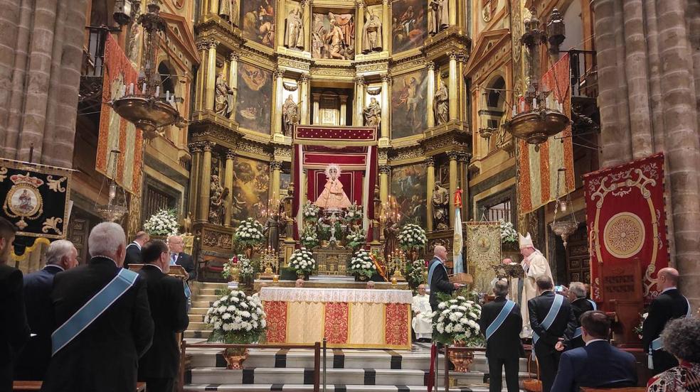 A las 11 de la mañana las terrazas estaban a rebosar mientras los caballeros se dirigían hacia su sede. «Hoy es un día de mucha ... alegría», comentaban unos con otros. Peregrinos, vecinos y turistas se iban situando en la plaza. Antes hubo un pasacalles.