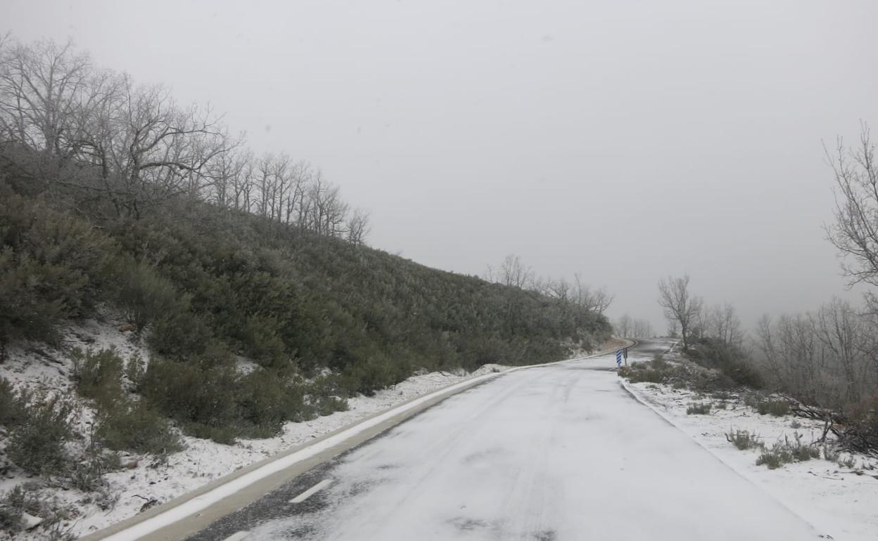 La subida al pico Villuerca por la carretera más alta de la región (1.600 metros de altitud) también se ha complicado por placas de hielo. Circular era complicado a la altura de Navezuelas, haciendo imposible la subida sin un vehículo 4x4. Se trata de la primera nevada en esta vía desde que se arregló con una inversión de la Diputación de Cáceres de cerca de un millón de euros.
