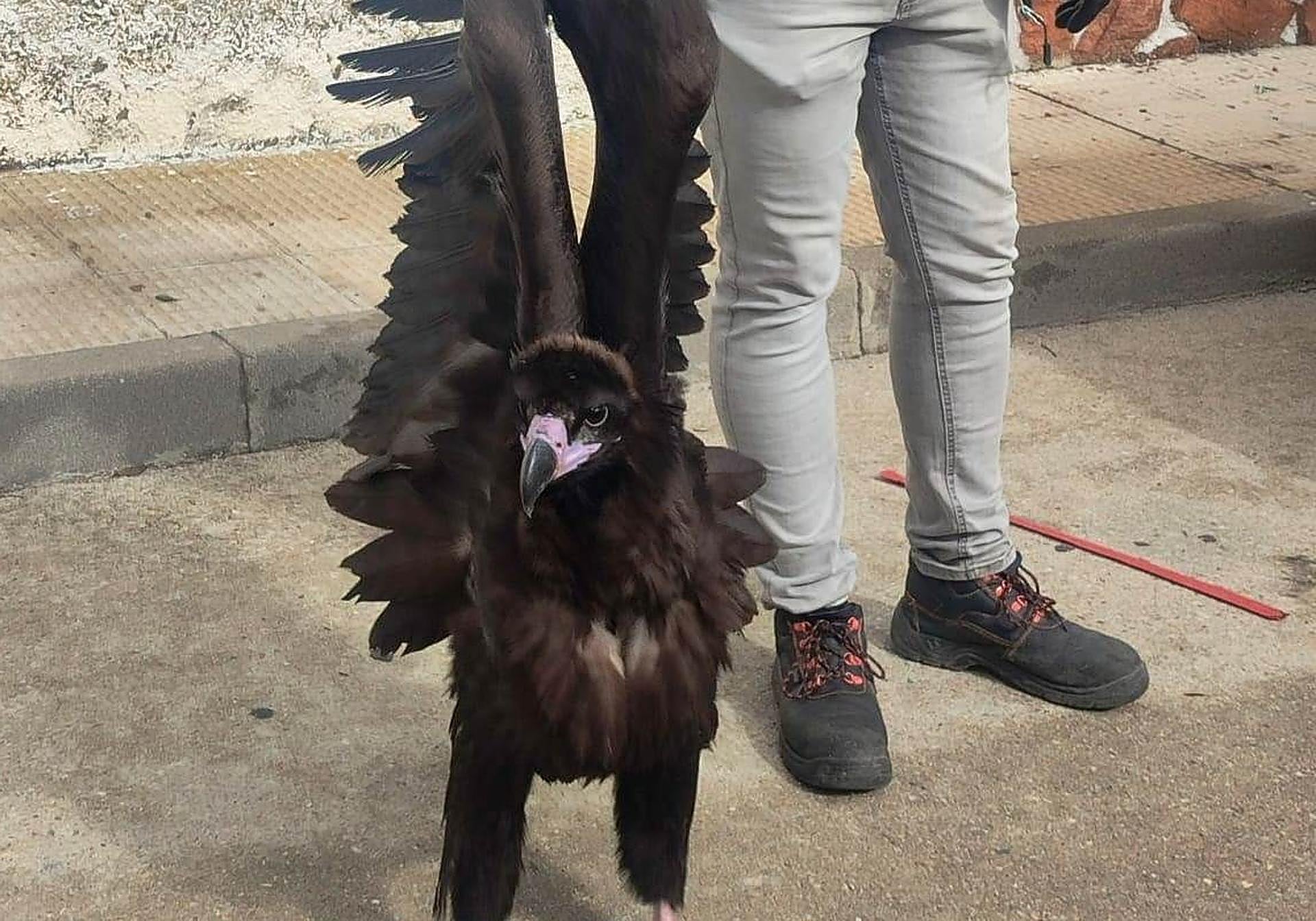 Rescatan un buitre negro desorientado en las calles de Talayuela