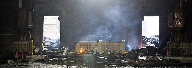 No obstante, ha considerado que el retablo mayor está "totalmente perdido", aunque ha expresado cierta esperanza de que se pueda recuperar "algo" de los dos retablos laterales, pero no será hasta mañana que se pueda hacer una primera evaluación, ya que están totalmente cubiertos por el humo recibido y no se ha podido evaluar a qué temperaturas fueron sometidos.