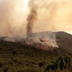 La niebla ha retrasado hoy el despegue de los medios aéreos de extinción, que se han incorporado pasadas las nueve de la mañana a la zona del incendio, que causó un rayo de una tormenta seca.