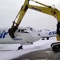 El blog Sick Chirpse nos presenta las impactantes imágenes de lo sucedido. En ellas podemos observar cómo alguien, presuntamente un empleado de un aeropuerto recién apartado de su puesto de trabajo, destroza literalmente un avión usando una excavadora. Un avión que cuesta varios cientos de miles de euros, pero que se rompe como si fuese de papel bajo la presión implacable de la máquina. Parece más una escena de una película que un caso real:
