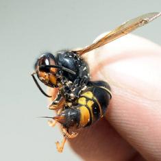 Y ello porque la avispa asiática espera a la abeja de espaldas a la colmena, cuando ésta va cargada y no tiene agilidad, la decapita, y se alimenta de la proteína de su abdomen y del néctar y el polen que la abeja transporta.