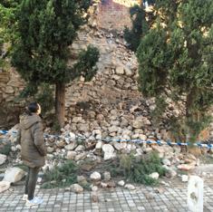El fuerte viento derriba parte de la muralla medieval de Talavera de la Reina