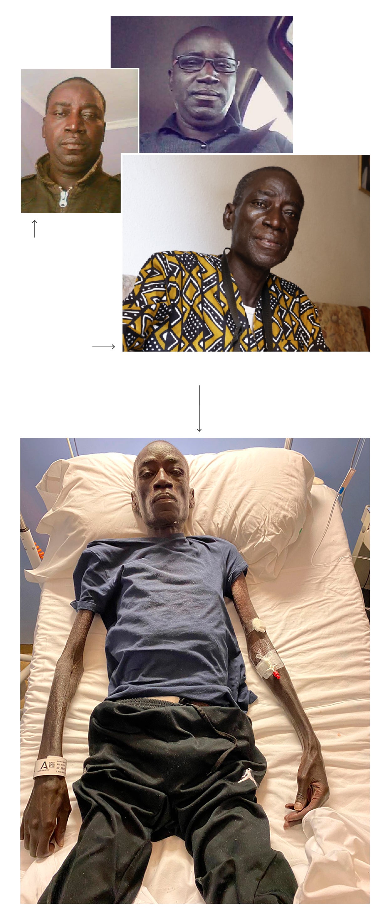 Ablaye trata de abrir el envoltorio de plástico de un cruasán sentado en el filo de la cama del hospital. Cada movimiento, cada gesto, le cuesta horrores. Ha perdido 10 kilos desde julio. Las auxiliares le han puesto la talla más pequeña de pijama y aun así le queda enorme. Está en los huesos, y no es una frase hecha. En su caso puede que hasta se quede corta.