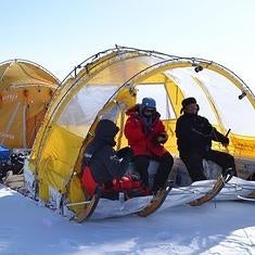 Para esta expedición, Larramendi y su equipo han preparado un trineo compuesto de cuatro módulos que navegan unidos. El primero, el más resistente, es al que van unidas las cometas y desde el que se pilota el convoy. Después llevan uno de carga, donde transportan víveres y recambios necesarios para sobrevivir el viaje, otro con el instrumental científico y placas fotovoltaicas, y un último con una gran tienda de campaña donde descansan y duermen. Entre los seis expedicionarios pueden navegar por el hielo y tomar muestras durante unas 20 horas cada día.
