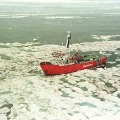 El barco 'MV Arctic Sunrise' de Greenpeace atravesando los hielos en el Ártico.