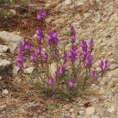 'Linaria becerrae' tiene flores con espolón largo y recto, intensamente violeta.