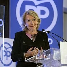 Se trata de un volumen de sexto de primaria de Ciencias y Sociales que se utiliza en colegios con el programa de bilingüismo en el que se habla del "récord de votos" de Esperanza Aguirre