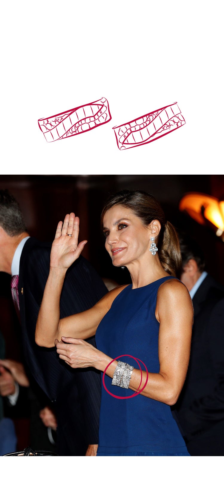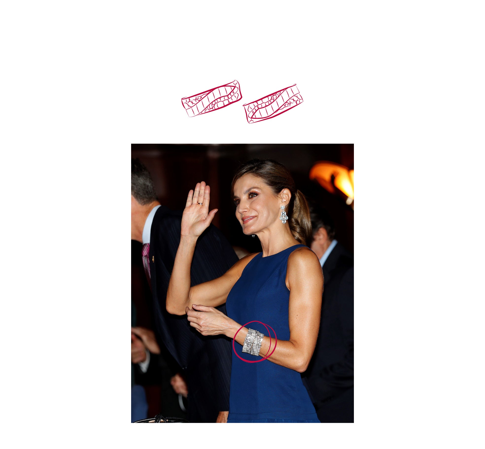 Originariamente eran una corona de pequeño tamaño, de la firma Cartier, que la reina Victoria Eugenia hizo adaptar en dos pulseras idénticas, llamadas las gemelas. La reina Letizia las ha usado de varias formas: una en cada muñeca, las dos juntas o una sola.
