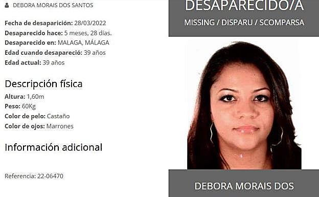 La desaparición de Débora se produjo el 28 de marzo de 2022, pero no se hizo pública hasta el mes de mayo. La Asociación SOS Desaparecidos difundió su búsqueda mediante un cartel con su foto y una descripción física: 1,60 de estatura, 60 kilos, pelo castaño, ojos marrones.