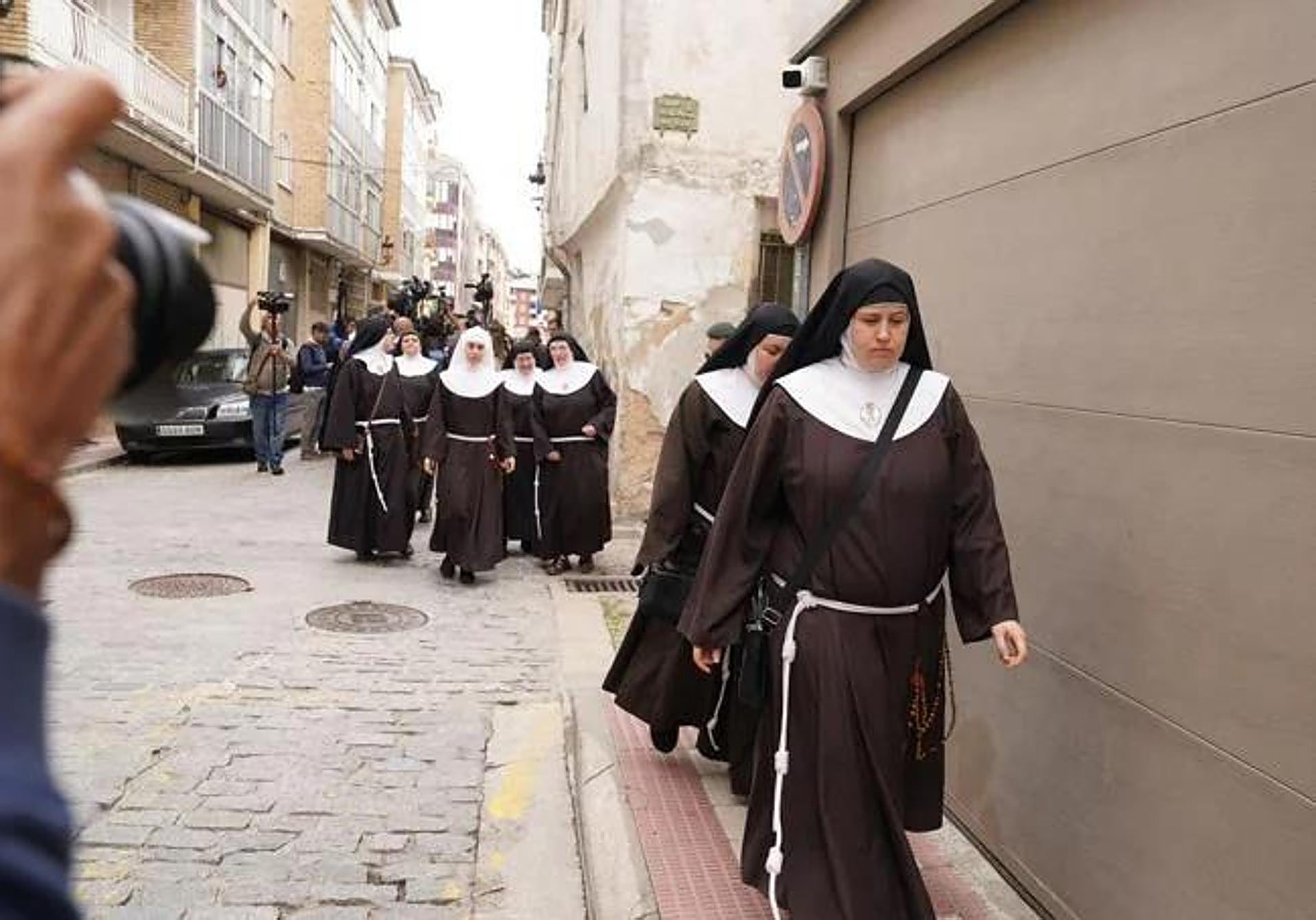 Dice el jefe de prensa de las monjas cismáticas de Belorado que la de hoy es «una jornada judicial sin precedentes en Europa», y seguramente ... no le falta razón: habría que rebuscar mucho para encontrar otra ocasión en la que ocho religiosas de clausura hayan salido del convento para acudir a un tribunal. En la anterior comparecencia ante la jueza de Briviesca, en mayo, cuando ellas ejercían de acusación contra el arzobispo de Burgos, solo tuvieron que comparecer cuatro representantes de la comunidad, y ya entonces el responsable de comunicación anunció que se trataba del «mayor número de monjas de clausura visto hasta el momento en un acto judicial». Hoy, en cambio, se celebra la vista del juicio de desahucio del monasterio burgalés y están llamadas a declarar las ocho monjas que han roto con Roma (hay otras cinco, ya mayores, que no han tomado parte en el enfrentamiento con la Iglesia), lo que brinda una extraña oportunidad de encontrarse con todas las 'rebeldes' en el mundo exterior, aunque solo sea en el apresurado trayecto desde los coches hasta la puerta del juzgado.