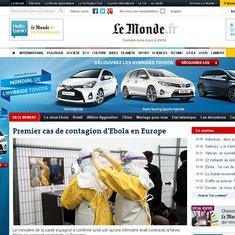 Las informaciones sobre la epidemia de ébola en África se han convertido en últimamente en un constante goteo en medios de todo el globo, que han acostumbrado en las últimas semanas a sus lectores a cifras de muertos y enfermos, recomendaciones de la OMS, declaraciones de intenciones por parte de los líderes internacionales sobre esta pandemia... La prensa internacional no ha tardado en hacerse eco del contagio de una de las trabajadoras del Hospital Carlos III que participó en el equipo que trató al misionero español García Viejo tras ser repatriado desde Sierra Leona. El rotativo galo Le Monde ha sido el que más atención ha prestado al asunto y encabeza su edición digital con un contundente y escueto: Primer caso de ébola en Europa.
