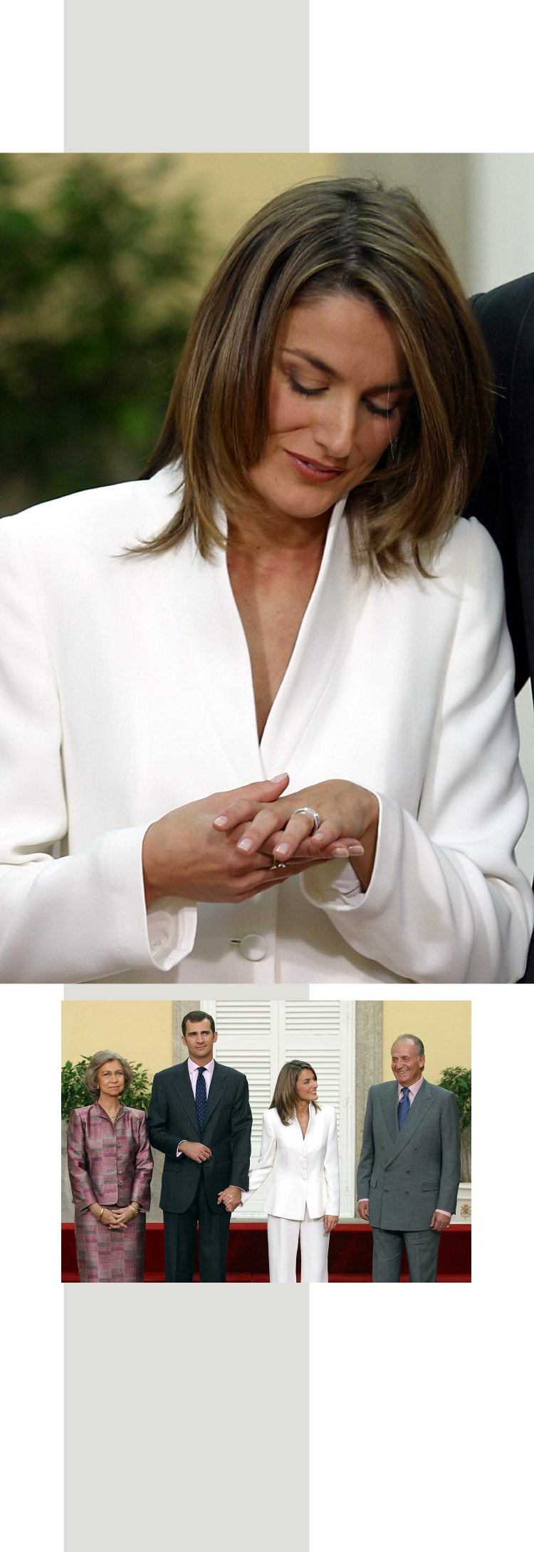 Aquella noche fue su último Telediario. La relación entre el heredero de la Corona y la periodista era un secreto a voces, hasta el punto de que Letizia tuvo que abandonar Torrespaña oculta en el coche de Urdaci para evitar la nube de informadores que buscaban captar una imagen de la joven asturiana de 31 años. La chica de las noticias estaba a punto de convertirse en noticia. En la noticia. Al día siguiente, Zarzuela emitió el comunicado oficial del compromiso de don Felipe con Letizia Ortiz. La pedida de mano tendría lugar cinco días después, en el Palacio de El Pardo. En la breve nota también se avanzaba que la boda se celebraría a principios de verano en la catedral de La Almudena, en Madrid. Nada más.