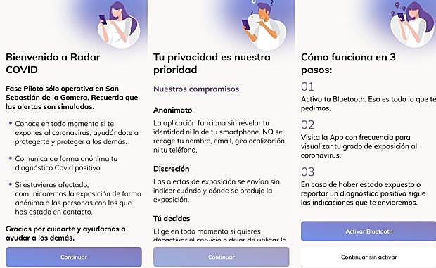 Las aplicaciones de trazabilidad y aviso de exposición al Covid-19 son una de las apuestas fuertes para esta época de nueva normalidad. Su uso requiere que esté siempre activado el bluetooth. Si nos descargamos la aplicación y nos encontramos durante al menos 15 minutos a una distancia inferior a dos metros, los smartphones intercambiarán unos ficheros alfanuméricos que se guardan en el terminal durante al menos 14 días. En caso de que nos hagamos un test de Covid-19 y demos positivo, nos facilitarán un código nuevo desde el Servicio Público de Salud que debemos introducir en la aplicación. Las personas con las que se haya tenido contacto recibirán una alerta: 'Has estado cerca de una persona contagiada'. «Se evalúa el tiempo de exposición y la cercanía para calcular el grado de riesgo. Ni la Autoridad Sanitaria ni Apple o Google reciben ningún tipo de información al respecto. Solo el usuario sabe que ha recibido una alerta de exposición», explica Sergio López, ingeniero de 'software'. No se indica fecha ni lugar del posible contagio.