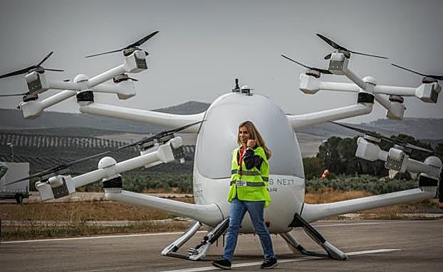 La versión del aerotaxi que ha volado en Villacarrillo es «la visión más futurista de la movilidad urbana». ¿Por qué? Porque no tiene piloto, es autónomo. «El tema principal para implantar estos vehículos es la legislación, por temas de seguridad y, también, la aceptación del público. Piensa en viajar solo en una aeronave... si viajar en un coche autónomo plantea dudas, imagina un avión autónomo. Tenemos que acostumbrarnos a esa situación».